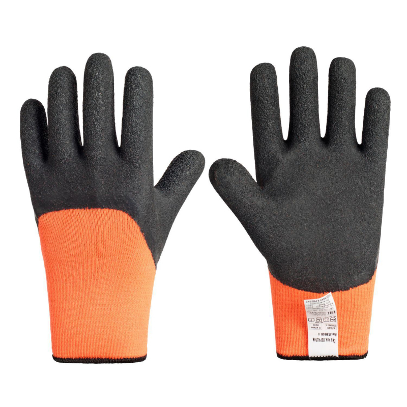 Перчатки защитные "Чибис" с покрытием из морозостойкой резины на основе натурального латекса. Размер: 10, XL. Перчатки двухслойные с рельефным полимерным покрытием для защиты рук от пониженных температур и механических воздействий. В перчатках серии "Чибис" используется подкладка из полушерсти. Это придает перчаткам лучшие теплоизоляционные свойства и комфорт. Рельефное покрытие перчаток закрывает полностью пальцы и ладонь, а также большую часть тыльной стороны ладони. Это предохраняет от намокания перчатки, при этом сохраняется высокая свобода движений, прочный захват предметов и быстрая сушка. Специальная формула покрытия на основе натурального латекса сохраняет эластичность и целостность при температуре до минус 50 °C. Подкладка надежно прикреплена к верху перчаток на кончиках пальцев и по контуру напульсника. Такое конструктивное решение исключает выворачивание подкладки наружу отдельно от верха. Перчатки "Чибис" имеют документальное подтверждение своих теплоизоляционных свойств в виде сертификата соответствия ТР ТС 019/2011 именно как СИЗ от пониженных температур.