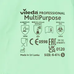 Перчатки латексные Vileda Professional с хлопковым напылением зелёные (размер 7-7.5, М, 174363) предназначены для широкого круга задач: профессиональной уборки помещений. Перчатки с ограничением подходят для работы с продуктами питания в столовых, кафе, барах и на кухнях. Подходят для использования с разведёнными моющими средствами и дезинфектантами. Применимы для работы на сухих и влажных участках. Идеальны для уборки коммерческой и некоммерческой недвижимости, объектов здравоохранения, производств и HoReCa.