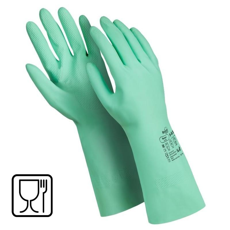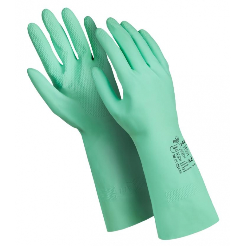Перчатки Контакт (L-F-02) - латексные герметичные перчатки, стойкие к кислотам и щелочам повышенных концентраций, органическим растворителям и спиртам, растительным жирам. Длина перчаток 32 см. Вес пары: 104 г. Выполнено хлорирование поверхности для увеличения механической прочности и снижения аллергических реакций на латексные протеины. Текстура рабочей поверхности 'соты' обеспечивает отличный сухой и влажный захват. Хлопковое напыление на внутренней поверхности для удобства надевания и использования. Перчатки Контакт допущены к контакту с пищевыми продуктами. Для предотвращения возникновения микробной среды и устранения неприятных запахов после производственного процесса перчатка прошла антибактериальную обработку Sanitized Actifresh. Количество пар в упаковке: 1 пара. Количество упаковок в транспортной коробке: 120.Соответствует регламенту ЕС 1935/2004. Разрешен контакт с пищевыми продуктами. Перчатки являются большемерными, размер перчаток - L (9-9.5).