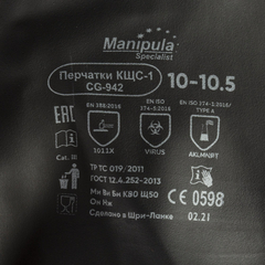 Перчатки КЩС-1 L-U-03 - двухслойные латексные герметичные перчатки, стойкие к кислотам и щелочам средних концентраций, органическим растворителям (этанол, ацетон), растительным жирам. Размер: 10, XL. Длина перчаток: 300 мм. Внутренняя поверхность обработана ионами серебра по технологии Silver. Хлорирование поверхности для увеличения механической прочности и снижения аллергических реакций на латексные протеины. Текстура рабочей поверхности "ромб" обеспечивает отличный сухой и влажный захват. Допущены к контакту с пищевыми продуктами. Материал покрытия: без покрытия. Внутренняя обработка: ионы серебра Silver. Утеплитель: нет. Подкладка: нет. Манжет: полимер. Эксплуатационные уровни EN: EN388-0021; EN374-АКL. Защитные свойства ТР ТС: Ми, Бм, Вн, К80, Щ50, Он, Нж. Класс риска: 2. Соответствуют регламенту ЕС 1935/2004 (разрешен контакт с пищевыми продуктами).