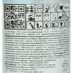Универсальный низкопенный моющий концентрат Pro-Bright Pro-line 036-1 1 л Назначение: для мойки стен и полов, твёрдой мебели, окон и подоконников в гигиенических и иных зонах. Рекомендуется для мойки пластика, а также прилегающих к бассейну увлажняемых поверхностей. Область применения: спортивно-оздоровительные и культурно-досуговые, образовательные, научные, финансовые, медицинские и иные учреждения, торговые и деловые центры, организации общественного питания, предприятия промышленности, гостиницы и вокзалы, все виды транспорта, в быту. Свойства: жидкий сильнощелочной низкопенный концентрат против улично-бытовых, жировых и мыльных загрязнений на ПВХ-линолеуме и др. пластиках, камне, кафеле и др. керамике, бетоне, металлах, резине, наливных полах и др. поверхностях. Пожаро- и взрывобезопасный. Замерзает, после размораживания свойства сохраняются. Способ применения: приготовить раствор и проверить стойкость поверхности на незаметном участке! Температурный режим мойки 20-60°С. Использовать с поломоечной или роторной машиной, распылением или вручную. Нанести на поверхность, через 3-5мин растереть и смыть водой. Максимальное разбавление: - 1:125 (8мл+992мл воды=1л 0,8%-раствора) для ежедневной уборки; - 1:80 (12,5мл+987,5мл воды=1л 1,25%-раствора) для генеральной уборки; - 1:30 (34мл+966мл воды=1л 3,4%-раствора) для мойки влагоёмких помещений (ванные, душевые, сауны, бассейны). Примечание: оптимальную концентрацию определять по виду и степени загрязнения, жёсткости и температуре воды, типу поверхности и др. условиям мойки. Состав: вода более 30%; соль неорганическая более 5%, но менее 15%; соль НТА менее 5%; аПАВ менее 5%; щёлочь менее 5%; нПАВ менее 5%; гликоль менее 5%; ароматизирующая добавка менее 5%. Плотность: 1,08+0,05 г/см? при 20°С Значение pH 1%-раствора: 12+0,5 Меры предосторожности: (Более подробная информация в паспорте безопасности) Опасно! Беречь от детей! Применять строго по назначению указанными способами. При работе использовать резиновые перчатки, защитные очки и спецодежду. Избегать вдыхания при распылении, проглатывания и попадания на кожу и в глаза. При попадании на кожу или в глаза промыть водой, обратиться к врачу. Не смешивать с кислотными препаратами! Хранение: плотно закрытым в заводской упаковке в тёмном сухом недоступном детям и животным месте отдельно от пищевых продуктов и кормов, а также кислотных препаратов. Срок годности: 5 лет от даты изготовления (при соблюдении условий транспортировки и хранения).