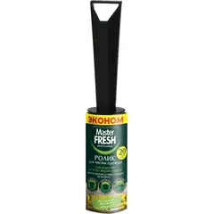 Ролик для чистки одежды Master Fresh 20 листов (С0008084) Ролик для чистки одежды Master Fresh убирает ворсинки, нитки, пух, шерсть животных, мелкие крошки и обрывки бумаги. Рекомендуется использовать при очищении одежды, мебели, салонов автомобилей и других изделий из любых видов ткани. Эргономичная ручка из качественного пластика удобна в использовании: не выскальзывает из руки, не разбалтывается. Липкий слой убирает загрязнения, при этом не оставляя следов на поверхности материала. Диагональная намотка позволяет одним движением удалять использованный слой. В ролике Master Fresh 20 листов. Так же вместе с роллером можно приобрести запасные блоки к ролику Master Fresh. Они легко заменяются. Способ применения. Снять этикетку. Провести роликом по загрязнённой поверхности. При загрязнении чистящего слоя снять загрязнённый лист и продолжить чистку.