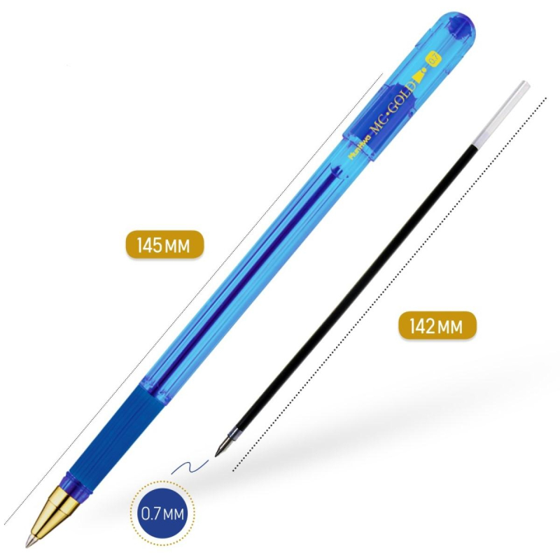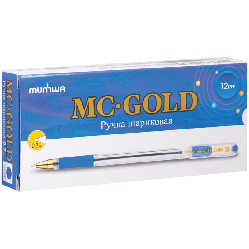 Ручка шариковая неавтоматическая MunHwa MC Gold синяя 0,7мм грип BMC07-02