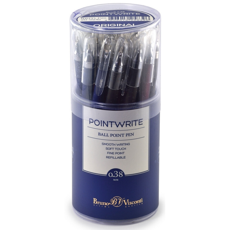 Шариковая неавтоматическая ручка Bruno Visconti PointWrite Original. Вид чернил: пигментные чернила Documental. Корпус выполнен из пластика со специальным покрытием Silk Touch. Тип пишущего узла: полуигольчатый, толщина линии письма 0,38 мм. Цвет чернил: синий. Сменный стержень. Производство: Китай.