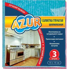 Салфетки хозяйственные Azur целлюлоза 15х15 см 560 г/кв.м (3 штуки в упаковке). Назначение: для уборки на кухни. Особенности и преимущества: - Незаменима на кухне! - Легко выжимается и быстро сохнет. - Оптимальный размер - удобно лежит в руке. - Использовать только во влажном состоянии. Характеристики: - Количество: 3 штуки. - Размеры: 15 х 15 сантиметров. - Плотность: 560 грамм на квадратный метр. - Состав: 95% целлюлоза, 5% хлопок (в сухом виде).