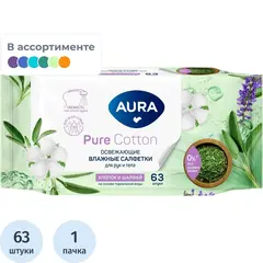 Влажные салфетки освежающие Aura 63 штуки в упаковке