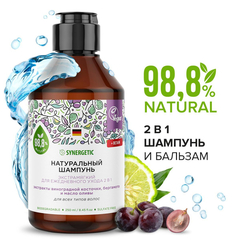 Шампунь для всех типов волос Synergetic "Экстрамягкий для ежедневного ухода 2 в 1" натуральный бессульфатный 250 мл. Назначение: Бессульфатный шампунь Synergetic "Экстрамягкий для ежедневного ухода 2 в 1" - эффективное средство для очищения кожи головы и всех типов волос - более чем на 98% состоит из натуральных компонентов. Шампунь деликатно очищает, эффективно ухаживает за волосами и защищает кожу головы. Благодаря формуле 2 в 1 бальзам в составе шампуня облегчает расчесывание, придает волосам эластичность, смягчает и увлажняет их. Формула с бетаином восстанавливает поврежденные волосы, укрепляет и стимулирует их рост. Натуральный шампунь содержит комплекс масел миндаля и оливы, который восстанавливает волосы, придает им мягкость и эластичность. Активные компоненты в составе шампуня укрепляют волосы и стимулируют восстановление кератиновых волокон. Экстракты виноградной косточки, бергамота и мелиссы нормализуют баланс кожи головы. Мультифункциональный компонент натурального происхождения софоролипид мягко очищает кожу головы и сохраняет естественный микробиом, а инновационный увлажняющий комплекс усиливает барьерные свойства кожи и обеспечивает до 72 часов глубокого увлажнения. Физиологичный уровень pH 5,5 устраняет сухость кожи головы и гарантирует безопасность при частом использовании средства даже для чувствительной кожи. Натуральный шампунь не содержит SLS, SLES, парабенов, силиконов, минеральных масел и красителей, а также компонентов животного происхождения, не тестируется на животных и сертифицирован британской организацией The Vegan Society. Знак Vegan - мировой стандарт этичной продукции. Способ применения: нанести небольшое количество шампуня на влажные волосы, хорошо вспенить и тщательно смыть водой. При необходимости повторить процедуру. Возможно появление естественного осадка натурального происхождения и незначительное изменение цвета шампуня, не влияющие на его качество и свойства. Меры предосторожности: при попадании в глаза промыть водой. Только для наружного применения. Оберегать от детей и животных. Хранить отдельно от еды. Состав: Aqua; Lauryl Glucosidex; Sodium Lauroyl Methyl Isethionate; Cocamidopropyl Betainex; Betainx (растительный увлажнитель); Candida Bombicola/Glucose/Methyl Rapeseedate Fermentx; Lauroyl/Myristoyl Methyl Glucamidex; Sweet Almond Oil Polyglyceryl-4 Estersx (масломиндаля); Olive Oil Polyglyceryl-4 Esterx (масло оливы); Citrus Aurantium Bergamia Fruit Extractx (экстракт бергамота); Melissa officinalis Flower/Leaf/Stem Extractx (экстракт мелиссы); Vitis Vinifera (Grape) Seed Extractx (экстракт виноградной косточки); Glycerinx; Coco Glucosidex; Glyceryl Oleatex; Sodium Cocoyl Isethionate; Triticum Vulgare (Wheat) Protein (протеины пшеницы); Saccharide Isomeratex; Hydroxypropylgluconamide; Hydroxypropylammonium Gluconate; Glycol Distearate; Glyceryl Stearatex; Guar Hydroxypropyltrimonium Chloridex; Sodium Benzoatex; Potassium Sorbatex; Parfum; Tetrasodium Glutamate Diacetatex; Sodium Citratex. ECOCERT approval. Условия хранения: хранить при температуре от +5 до +25 °С вдали от нагревательных приборов и огня. Не допускается хранение под непосредственным воздействием солнечного света. Срок годности: 36 месяцев с даты производства при соблюдении условий хранения.