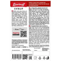 Сироп Barinoff Соленый Пекан 1 л. Сироп Соленый Пекан от бренда Barinoff - это идеальное дополнение для любителей экспериментировать с вкусами в кофе, чае и десертах. С его уникальным сочетанием соленых и ореховых нот, этот сироп придает любому напитку или блюду неповторимый вкус. Он идеально подходит для использования в выпечке, как украшение блюд, а также для создания коктейлей и мороженого. Состав сиропа включает в себя натуральный ароматизатор пекана, что обеспечивает его насыщенный вкус. Сироп от Barinoff станет отличным выбором для тех, кто ценит уникальные вкусы и ищет новые идеи для создания вкусных и интересных блюд и напитков. Состав: сахар, вода питьевая, соль, ароматизатор натуральный, регулятор кислотности - лимонная кислота, красители - сахарный колер I простой, консерванты - сорбат калия, бензоат натрия. Пищевая ценность на 100 г: углеводы - 64 г. Энергетическая ценность на 100 г: 260 ккал / 1090 кДж. Условия хранения: хранить при температуре от 0°С до +25°С и относительной влажности воздуха не более 75%, избегая попадания прямых солнечных лучей.