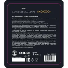 Кокосовый сироп Деловой Стандарт - один из самых популярных и востребованных тропических сиропов современности. На его основе создана масса коктейлей, он используется при производстве кондитерских изделий и выпечки, а благодаря высокой густоте и насыщенному вкусу способен сыграть роль идеального топпинга. Сироп со вкусом Кокоса имеет мягкий светлый цвет, выраженный аромат и характерный вкус молочка кокосового ореха. В сиропе полностью отсутствуют любые синтетические ароматизаторы, красители и прочие искусственные добавки, что делает его абсолютно безопасным для применения, как для взрослых, так и для детей. Кокосовый сироп недаром пользуется популярностью, ведь он обладает, пожалуй, самым ярким экзотическим вкусом и ароматом. Сироп Деловой Стандарт - прекрасное дополнение в каждом баре, кофейне, кафе, кондитерской, пекарне и ресторане. Состав: ссахар, вода питьевая, ароматизаторы, регулятор кислотности - лимонная кислота, консерванты (сорбат калия, бензоат натрия). Пищевая ценность: белки - 0 г; жиры - 0 г; углеводы - 65 г. Энергетическая ценность: 260 ккал/1089 кДж. Срок годности: 24 месяца. Условия хранения: Хранить при температуре от 0 до +22 С, относительной влажности не более 75%, в помещениях, защищенных от солнечных лучей. Вскрытую бутылку хранить в сухом, прохладном, защищенном от солнечных лучей месте при температуре от 0 до + 22 С не более 120 суток в пределах срока годности. Вес: 1000 мл. Страна производства: Россия.