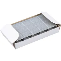 Скобы из высококачественной оцинкованной стальной проволоки повышенной прочности со специально заостренными углами ножек, увеличивающих пробивную способность. Кассеты не рассыпаются благодаря качественной склейке. Не ржавеют. Пробивают до 30 листов в зависимости от мощности степлера.