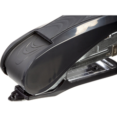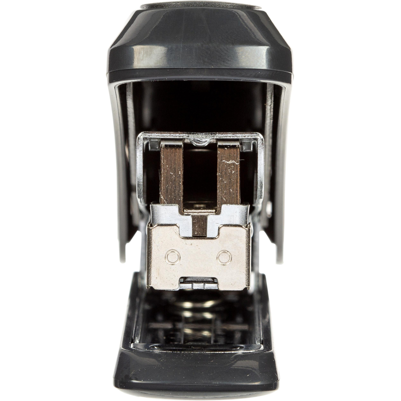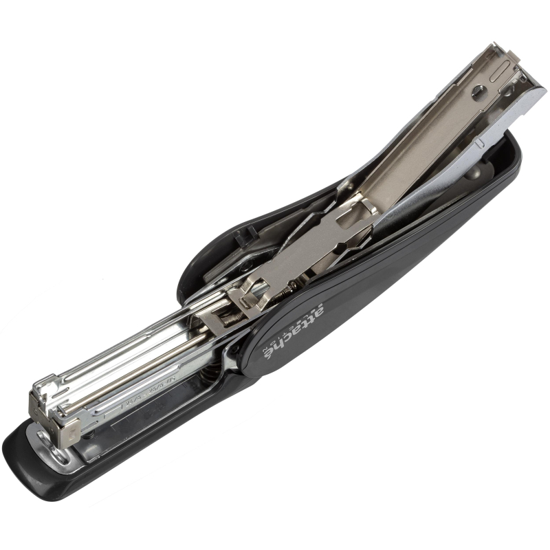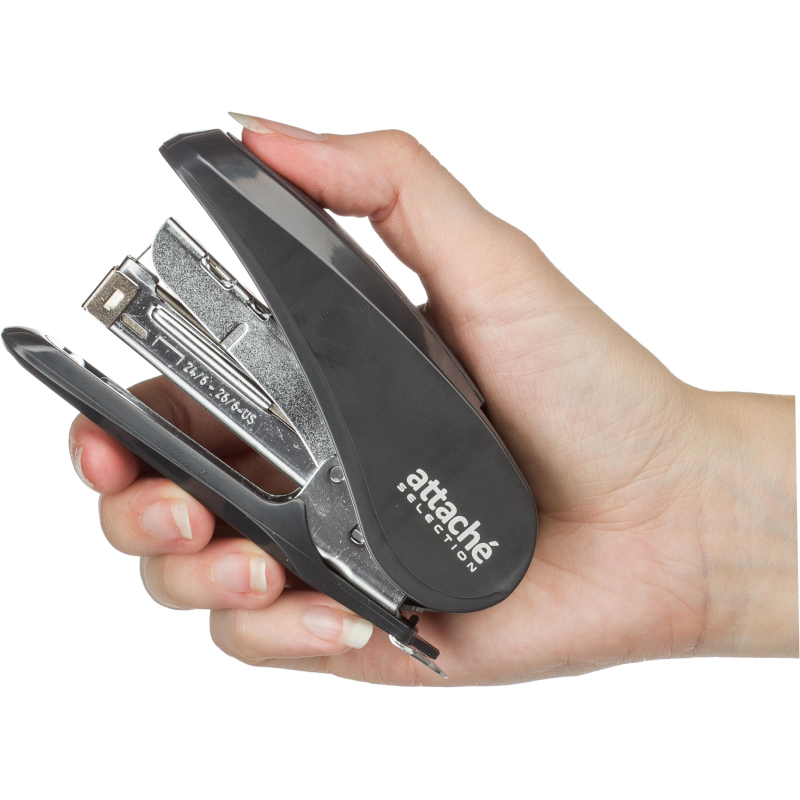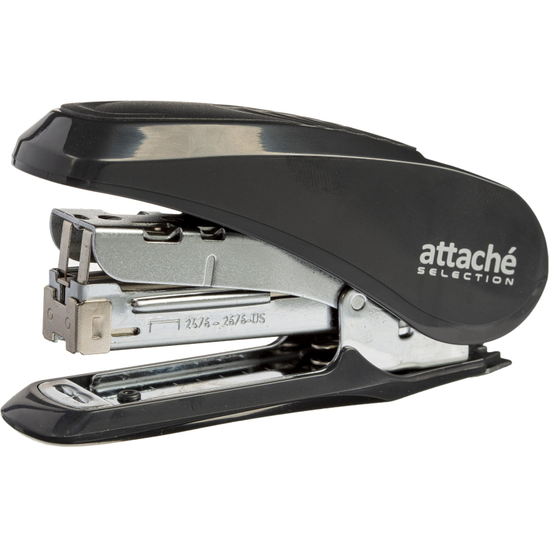 Степлер Attache Selection выполнен в металлическом корпусе серого цвета. Рабочие компоненты изготовлены из высококачественной стали. Детали корпуса выполнены из ударопрочного и износоустойчивого ABS-пластика. Степлер комфортно использовать за счет противоскользящей вставки на верхней части корпуса. Степлер совместим со скобами №24/6-26/6, одновременно сшивая до 30 листов бумаги плотностью до 80 г/кв.м. Благодаря технологии Less Effort при сшивании прилагается до 45% меньше усилий. Модель оснащена антистеплером, механизмом быстрой загрузки скоб и индикатором наполненности лотка для скоб. Степлер скрепляет бумагу закрытым типом сшивания, при котором ножки скобы загибаются внутрь. Это дает возможность надежно хранить сшитые документы на протяжении длительного времени. Вместимость лотка для скоб: 50 скоб размером №24/6 или 10 скоб размером 26/6. Глубина закладки бумаги: 52 мм.