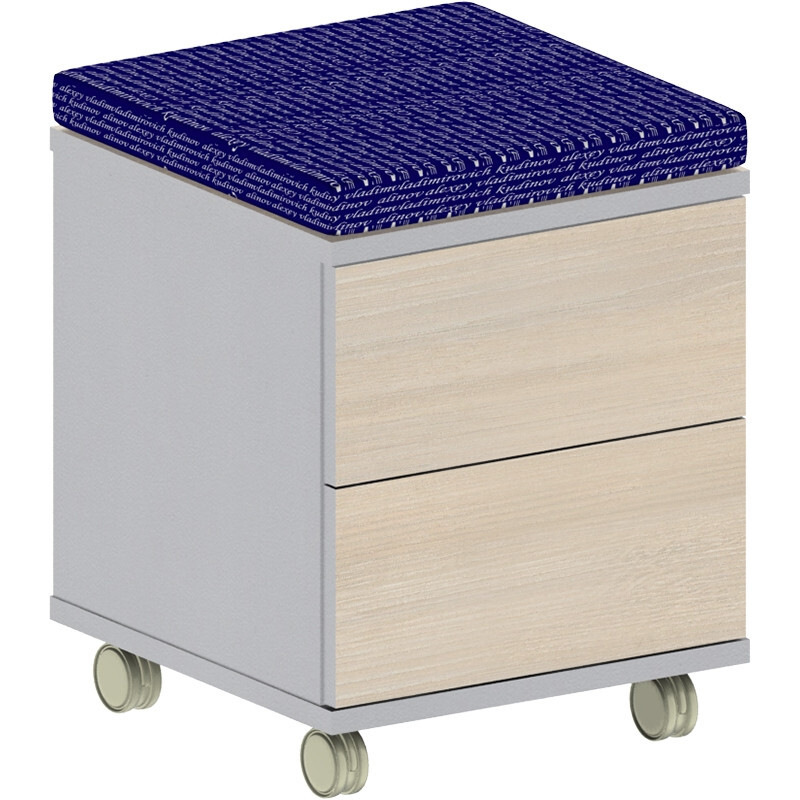 Внимание! Пожалуйста, проверяйте цвет изделия до начала сборки! Цвет на изображении товара в интернет-магазине или в печатном каталоге может отличаться от оригинала из-за особенностей цветопередачи.Фасады выдвижных ящиков тумбы Easy Business изготовлены из ЛДСП толщиной 18 мм в декоре дуб шамони светлый; каркас ЛДСП 18 мм светло-серого цвета. Кромка видимых поверхностей - светло-серого цвета. Дно ящика из ХДФ толщиной 3,2 мм. На верхней крышке, на липучках, закреплена поролоновая, обтянутая синей тканью, подушка - тумбу можно использовать в качестве стула. Тумба мобильная - в комплекте усиленные мебельные ролики серого цвета. Ящики оснащены нажимным механизмом открывания - без ручек. Тумба поставляется в собранном виде.
