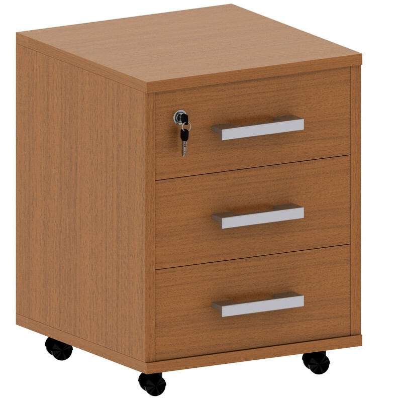 Внимание! Пожалуйста, проверяйте цвет изделия до начала сборки! Цвет на изображении товара в интернет-магазине или в печатном каталоге может отличаться от оригинала из-за особенностей цветопередачи.Выкатная тумба Арго имеет размеры 58x44 см и глубину 45 см. Изготовлена из деревоплиты (ДСП) с износостойким ламинированным покрытием цвета орех. Оснащена тремя выдвижными ящиками, верхний из которых закрывается на ключ. Кромки отделаны лентой из ПВХ для защиты от повреждений. Основание тумбы с четырьмя роликами для удобного перемещения. Боковая и задняя стенка выдвижного ящика выполнена в цвете лайм.