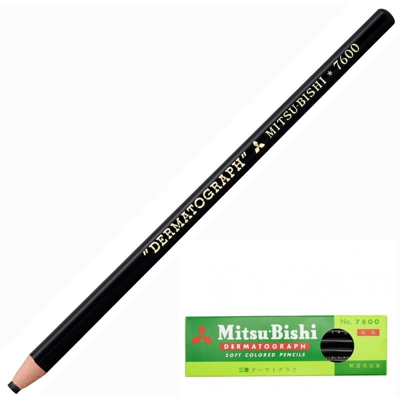 Восковой карандаш Uni Dermatograph черного цвета, который не требует заточки. Карандаш пишет практически на всех видах поверхностей: стекло, металл, керамика, пластик и кожа. Имеет широкую область применения: для маркировки изделий, нанесения разметки, подписей, декорирования посуду, нанесения узоров и прочее. При температуре +40 С грифель расплавляется. Толщина линии: 1,0 - 4,4 мм. Чтобы ?заточить? карандаш без точилки необходимо три простых шага: 1) Потяните за нить вдоль корпуса карандаша, чтобы разорвать обертку на требуемую длину. 2) Потяните за бумагу обертки, чтобы открыть грифель. 3) Удалите ненужную бумагу обертки карандаша Uni Dermatograph.